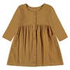 Loose fit short sleeve muslin dress. A comfortable and very soft to the touch garment in a beautiful tile color. It has functional coconut buttons. All our garments are made free of toxins and are hypoallergenic for your little one's soft and delicate skin. Designed with ♥ in Barcelona. Ethically made in India.