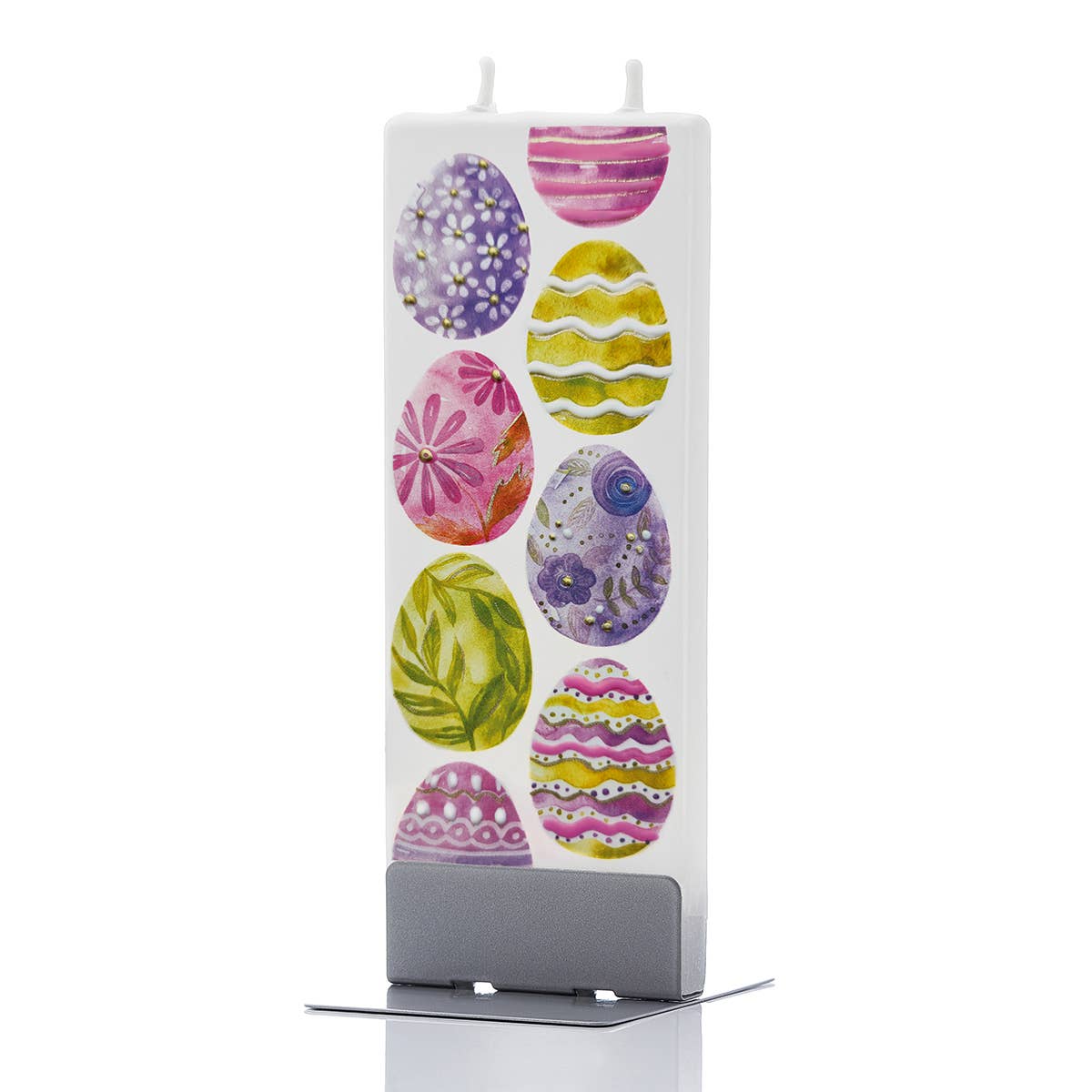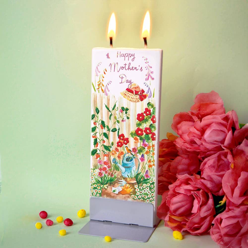 Looking for a perfect Mother's Day gift? We got you! Floral MOM letters makes it simply, though beautiful gift to your Mom on Mother's Day or a thoughful gift for congradulating on expecting or getting a baby. Hand-painted by artisans in Lithuania, Flatyz candles stand out in their simplicity. The flat design is a unique approach to candles that has a minimalist, eye-catching feel. The twin wicks burn evenly and self-extinguish as they near the steel base, without any dripping wax or smoke. Materials: Paraffin wax, steel, cotton wick Includes one handmade flat candle and one steel stand Non-dripping wax; evaporates as it burns Twin wicks ensure candle burns evenly and self-extinguishes as it nears the base Steel stand helps make candle attractive display piece Unscented and smokeless Every candle is hand-poured and hand-decorated Creative, unique gift Burning time: 3-4 hours Warning: Not for use by children Made in Lithuania Dimensions: 2.4" x 0.4" x 5.9" Weight: 0.22 lb.
