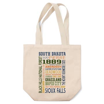 South Dakota State Map Souvenir 12 oz Canvas Tote Bag