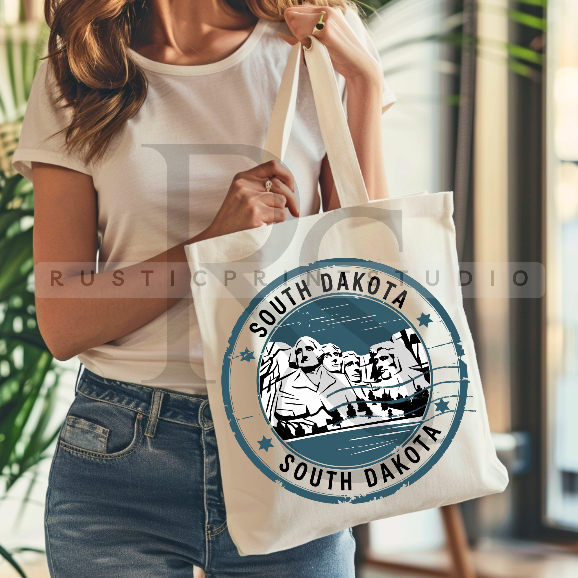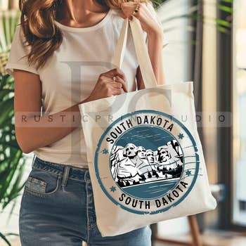 Wholesale South Dakota State Map Souvenir 12 oz Canvas Tote Bag