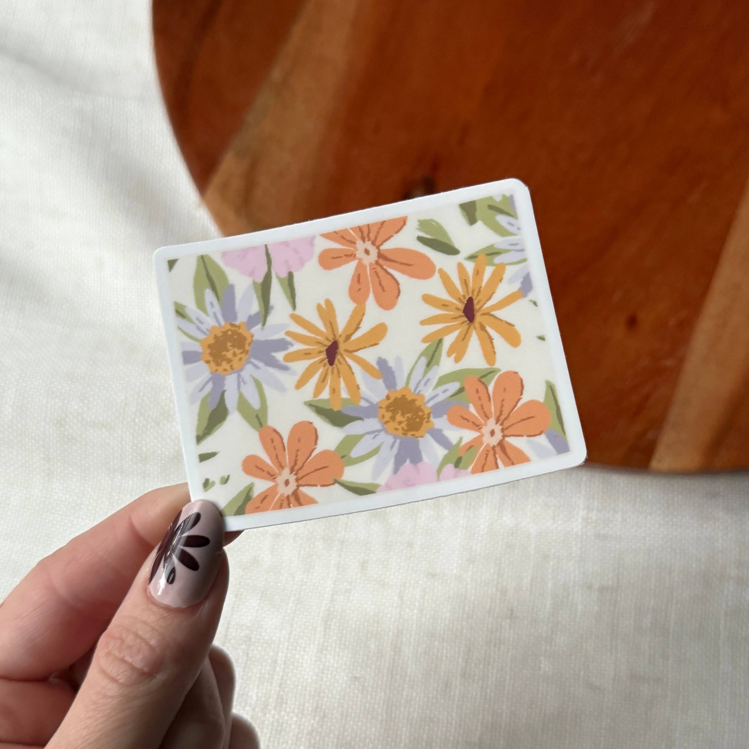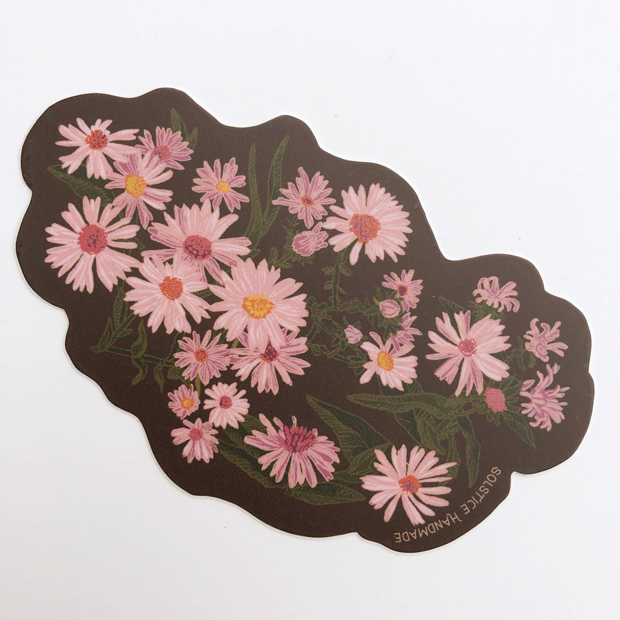 This cute sticker features an illustrated bunch of daisy flowers, in the colors ochre yellow and cream. The image pops on its black background. This is a high quality, durable vinyl. It is scratch proof, water proof, and weather proof. It can even safely go through the dishwasher. Great to put on laptops, water flasks, your vehicle, & any other place it will get seen and used often. • 3” • durable vinyl