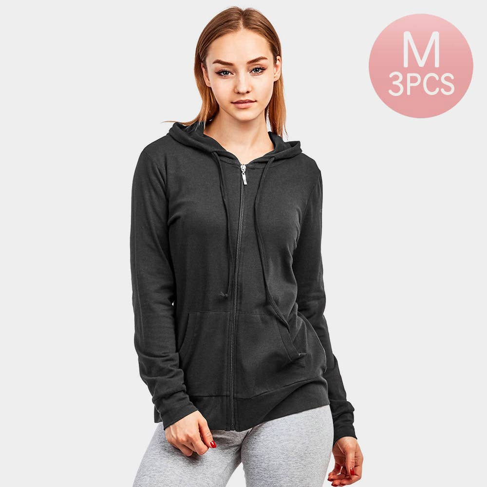 3PCS - Solid Thin Zip Up Hoodie Jackets • Size : S • Material : 95% Cotton, 5% Spandex