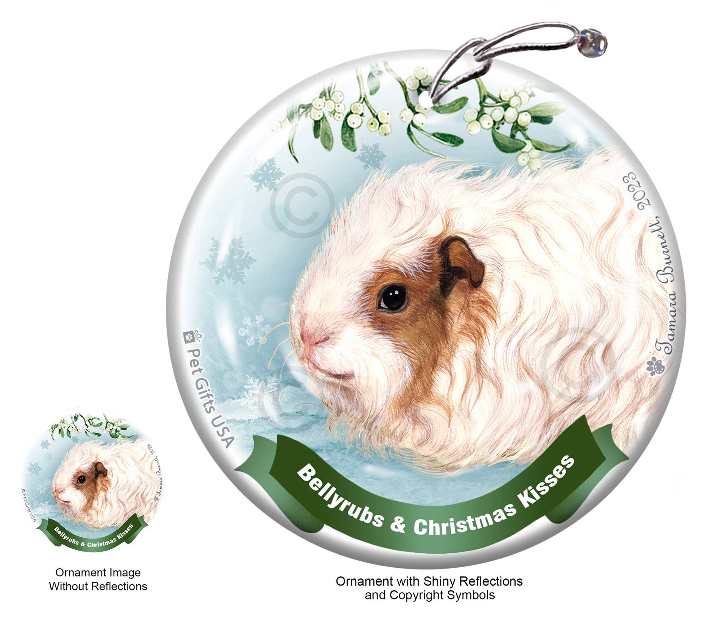 3 inch Snowflake Porcelain Ornament Guinea Pig Christmas