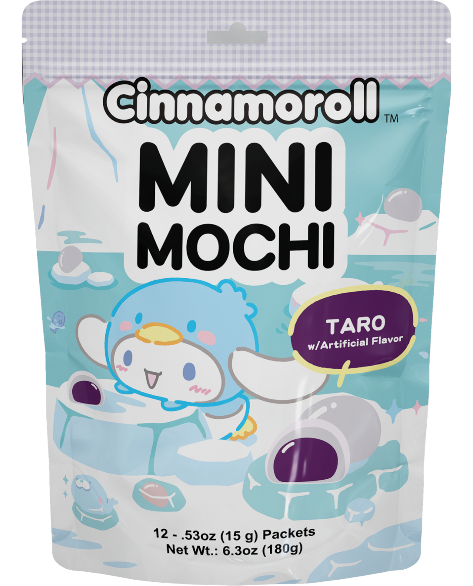 Sanrio Kuromi Mini Mochi Black Sesame. Officially licensed mochi from Sanrio that's both fun and delicious! **Each bag has 12 individually wrapped mochi.
