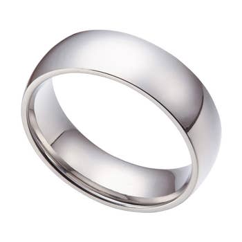 This Damascus steel band has an acid finish and the interior of the ring is lined with a hardwood sleeve. Hardwood rings are a beautiful combination of natural cut hardwood and custom formed alternative metal. If you're searching for a simple option, this wedding band offers a unique but simplistic aesthetic. The appealing design has an acid finish and the sterling hardwood sleeve adds a little extra pop. Damascus wedding bands are made from a combination of two different types of stainless steel that are folded and twisted together. This method creates their unique and signature wavy design. "They're created from durable steel and are a very interesting option if you're looking for something different," explains celebrity jeweller, George Khalife.