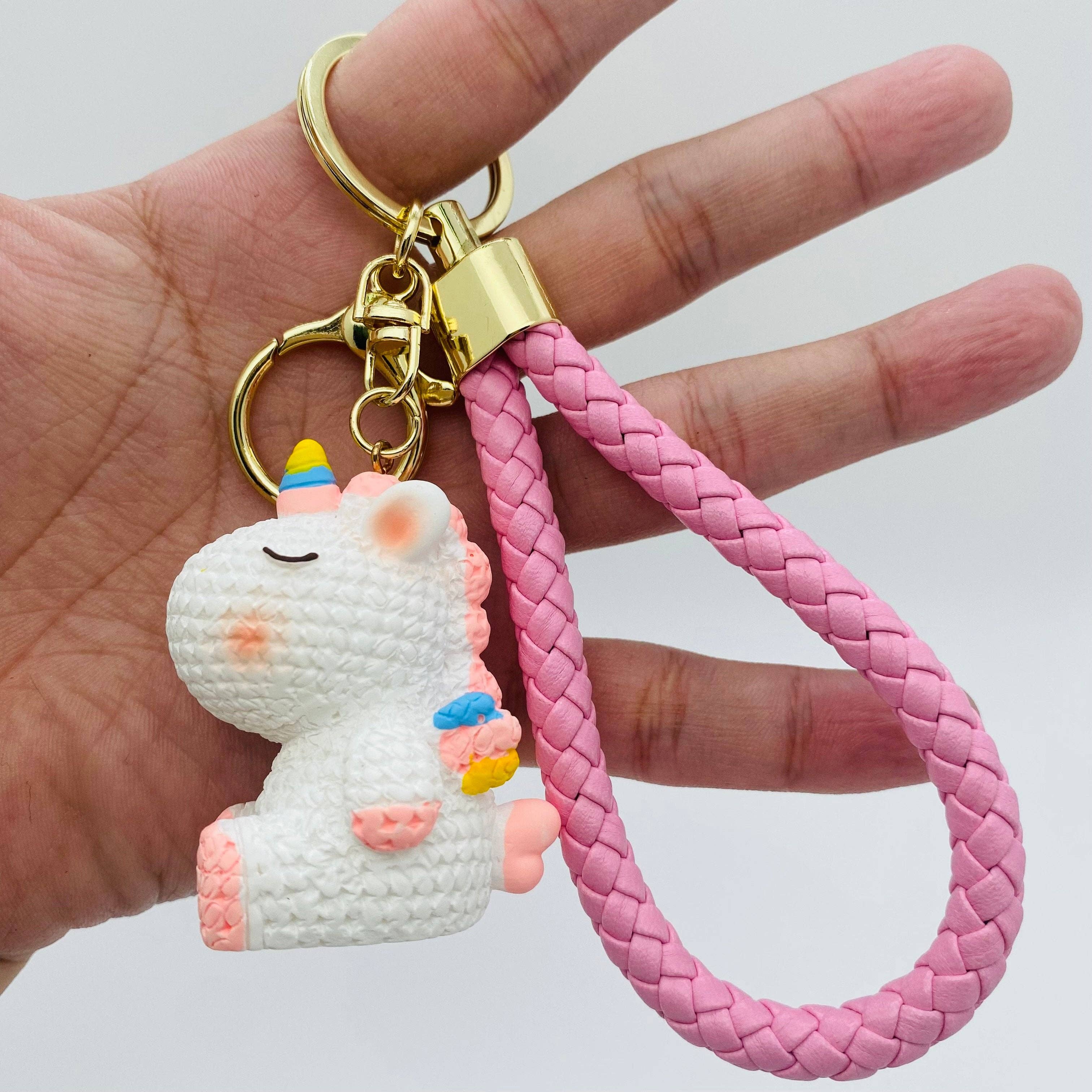 Cute Unicorn Keychain -The adorable unicorn keychain Ideal for decorating backpacks, purses, keys, or as charming additions to any accessory collection -Dimension- 2 Inch L X 1 Inch W Dog Charm -3 Color Unicorn Keychain Assorted