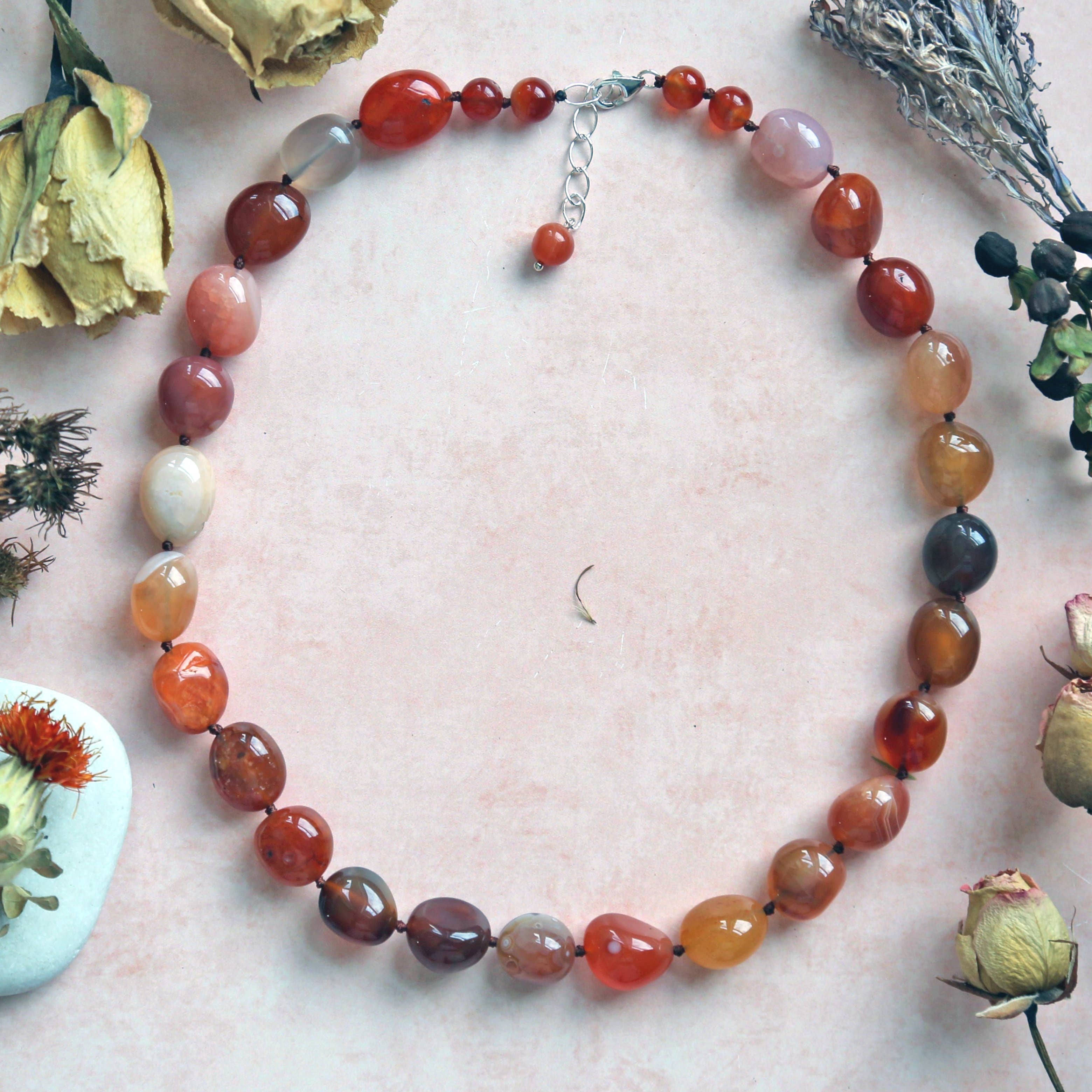 Necklace Length: 35” long. Material: Apatite, kyanite, citrine, labradorite, garnet, smoky quartz, carnelian, silver cultured pearl dyed. Clasp & Jump Ring: Sterling silver lobster claw clasp and jump ring.