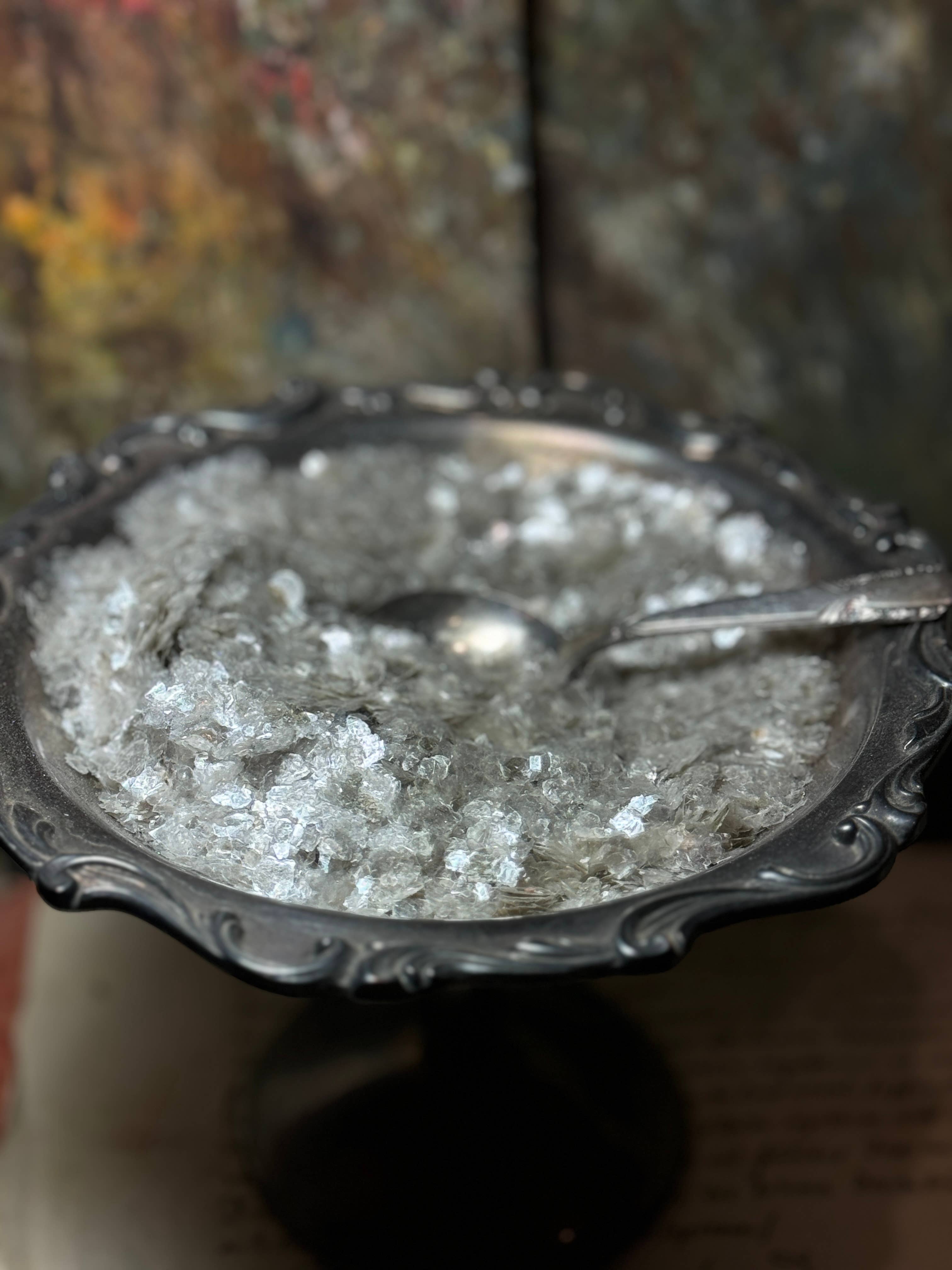 This Mica is a nontoxic waterproof mineral that adds a beautiful and vintage look to your crafting and decorating. Much lighter than glass glitter. The same mica was used in the 1800s on German ornaments. Why not bring back the nostalgia of yesteryears? This is not a reproduction. Available in 1 lb bags. This is the same mica we use on our reproduction ornaments. This is not a man-made material. Our mica flakes are non-toxic and safe for use in a plethora of DIY projects not limited to art, craft, and decorative projects. Please email me with questions.