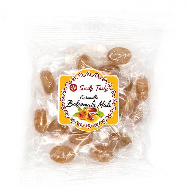 Balsamic Honey Candies Inspired by the sweetness of honey and the intense aroma of balsamic, our balsamic honey candies are a true feast for the senses. Natural Ingredients, Authentic Taste Carefully prepared using only natural and genuine ingredients, they are a perfect blend of sweetness and complexity. The honey offers a delicate sweetness, while the balsamic adds a rich and velvety note, creating a taste experience that will captivate your palate. A Symphony of Flavors Each candy offers an explosion of balanced flavors that harmoniously blend in your mouth. The sweetness of honey merges with the acidity of balsamic, creating a unique experience that will make you want to savor every single piece. For Moments of Pleasure They are the perfect accompaniment for any time of the day. Whether you're looking for a sweet treat during your coffee break or wish to end a dinner with a touch of sophistication, these candies are the ideal choice. Made with Passion Each candy is crafted with passion and dedication, following traditional recipes that celebrate the art of confectionery. We ensure the highest quality in every bite because we believe every sweet should be an unforgettable experience. Discover the perfect balance between sweetness and complexity with our balsamic honey candies. A taste experience that will surprise you with every bite! Ingredients: Sugar, glucose syrup, honey 20%, eucalyptus, flavors. Net Weight: 100 g.
