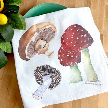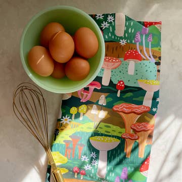 Midnight Mushrooms Linen Cotton Handmade Tea Towel