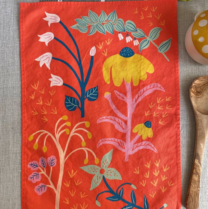 These tea towels are a beautiful cotton linen blend and are machine washable! The fabric is printed through an eco-friendly process, using water-based inks. I sew these tea towels myself in my home studio and if I need extra help, I ask my mom :) I love these tea towels! The fabric is soft, yet durable. They get softer with each washing. They're great for cleaning up messes, giving as gifts, covering your fresh baked bread, displaying on your oven door handle. They can also be hung as a wall hanging with a wooden poster hanger (see last image). Each towel has a cotton hanger in the corner and measures approximately 16”x 24”. Machine wash cold. Tumble dry low or hang to dry outside in the sunshine. Light iron to maintain shape.
