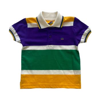 Celebrate the carnival spirit with our "White Mardi Gras Applique Ruffle Shirt" for your little princess! Adorned with a playful Mardi Gras mask appliqué, this shirt is ready for twirling and dancing the day away. Flutter sleeves adorned with a vibrant purple trim add an extra flair of fun. Let the festivities begin with this whimsical and oh-so-charming shirt!