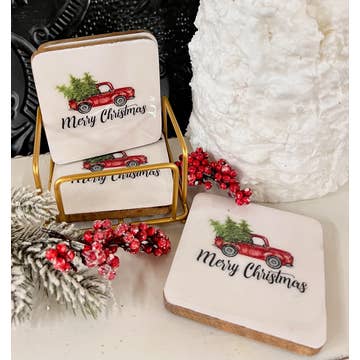 Christmas Scene Coaster, Rustic Charm, Farmhouse Elegance