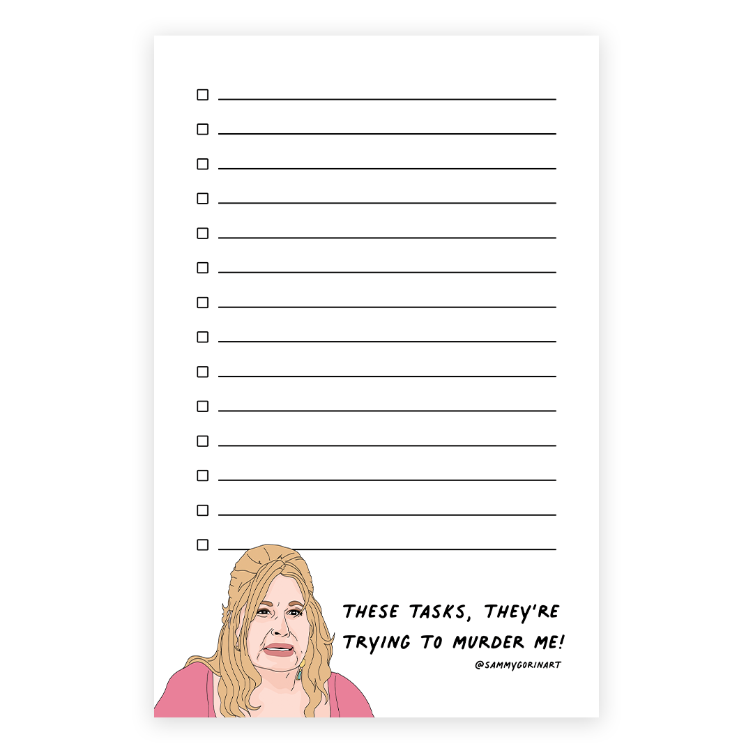 A notepad for your list of receipts proof timeline and screenshots inspired by the real housewives of Salt Lake City. About this notepad - - 50 tear away sheets (gummed at top) - Measures 8.5" x 5.5" - Cardboard backing - Designed in Charlotte, printed in USA - Packaged safely in a cellophane sleeve **Please note, color of actual notepad may vary slightly due to the settings of the device you are viewing the listing on.