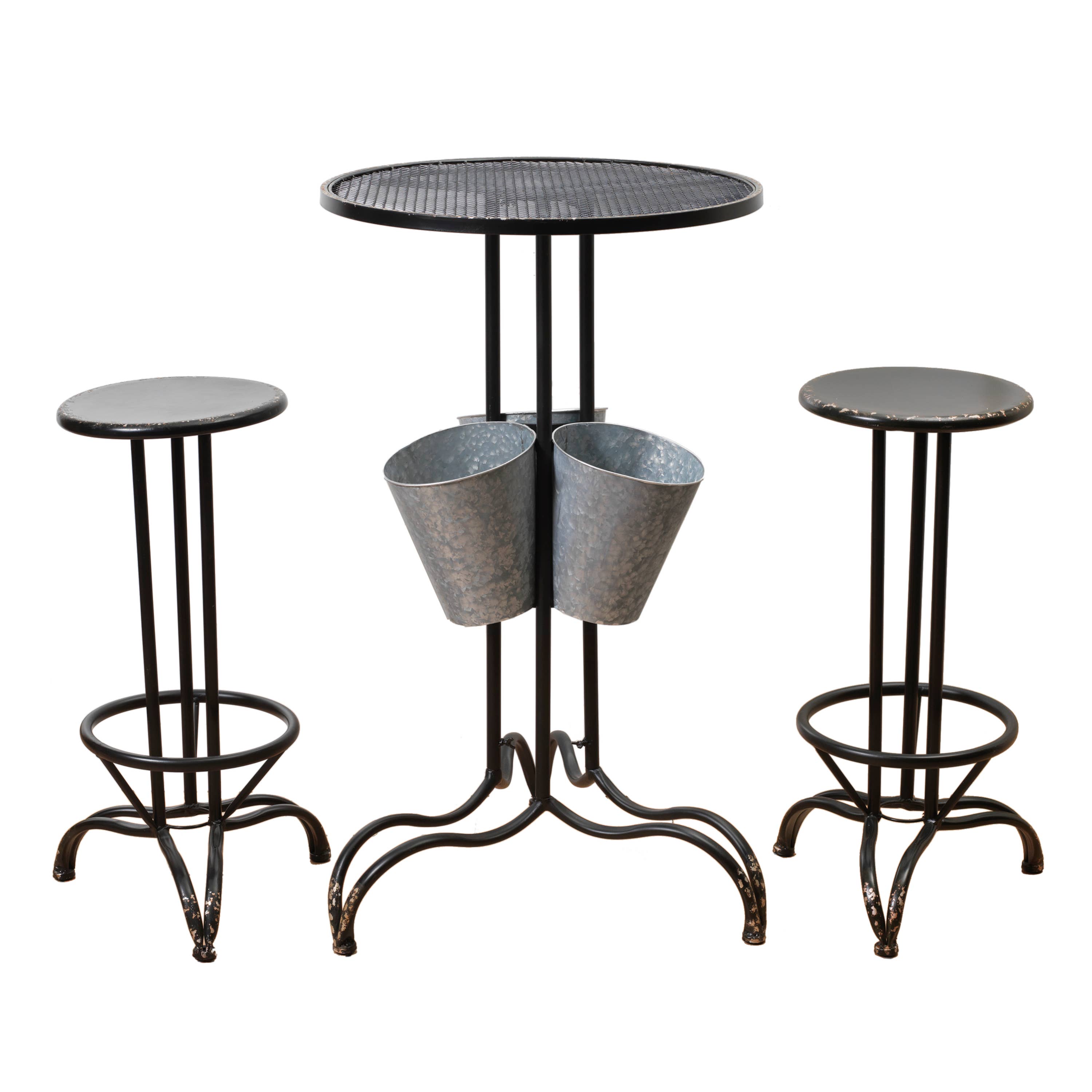 THIS LISTING INCLUDE VARIANTS FOR TABLE AND CHAIRS. YOU MUST PURCHASE 1 TABLE WITH EVERY 2 CHAIRS. WE WILL NOT FULFILL ORDERS THAT DO NOT MATCH VALUE OF A FULL SET. PLEASE ADD 1 TABLE AND 2 CHAIRS TO YOUR CART. Set Specifications Material: 100% iron Table Specifications Dimensions: 23.5" L x 23.5" W x 26.75" H Item Weight: 13.2lbs Seating Capacity: 2 people Weight Capacity: 30lbs Leg Space (floor to bottom of table): 25" Tabletop Diameter: 23" Chair Specifications Dimensions: 17.25" L x 19.75" W x 37" H Item Weight: 11lbs Seating Capacity: 1 person Weight Capacity: 200lbs Leg Space (floor to seat): 20" Backrest Height: 17" Seat Width (side to side): 17" Seat Depth (front to back): 15" Dimensions: Table: 23.5" x 23.5" x 26.75"H Chairs: 17.25"X19.75"X37"H.