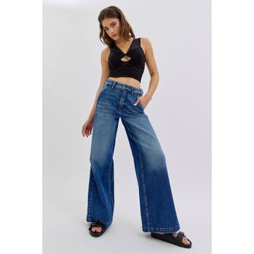 HIGH RISE RAW HEM WIDE A LINE JEANS T6596
