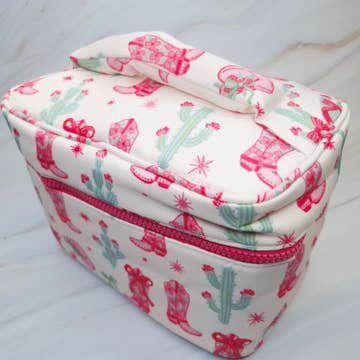 Wholesale Howdy Cowgirl Jute Cosmetic Bag White/Pink/Orange 10x6