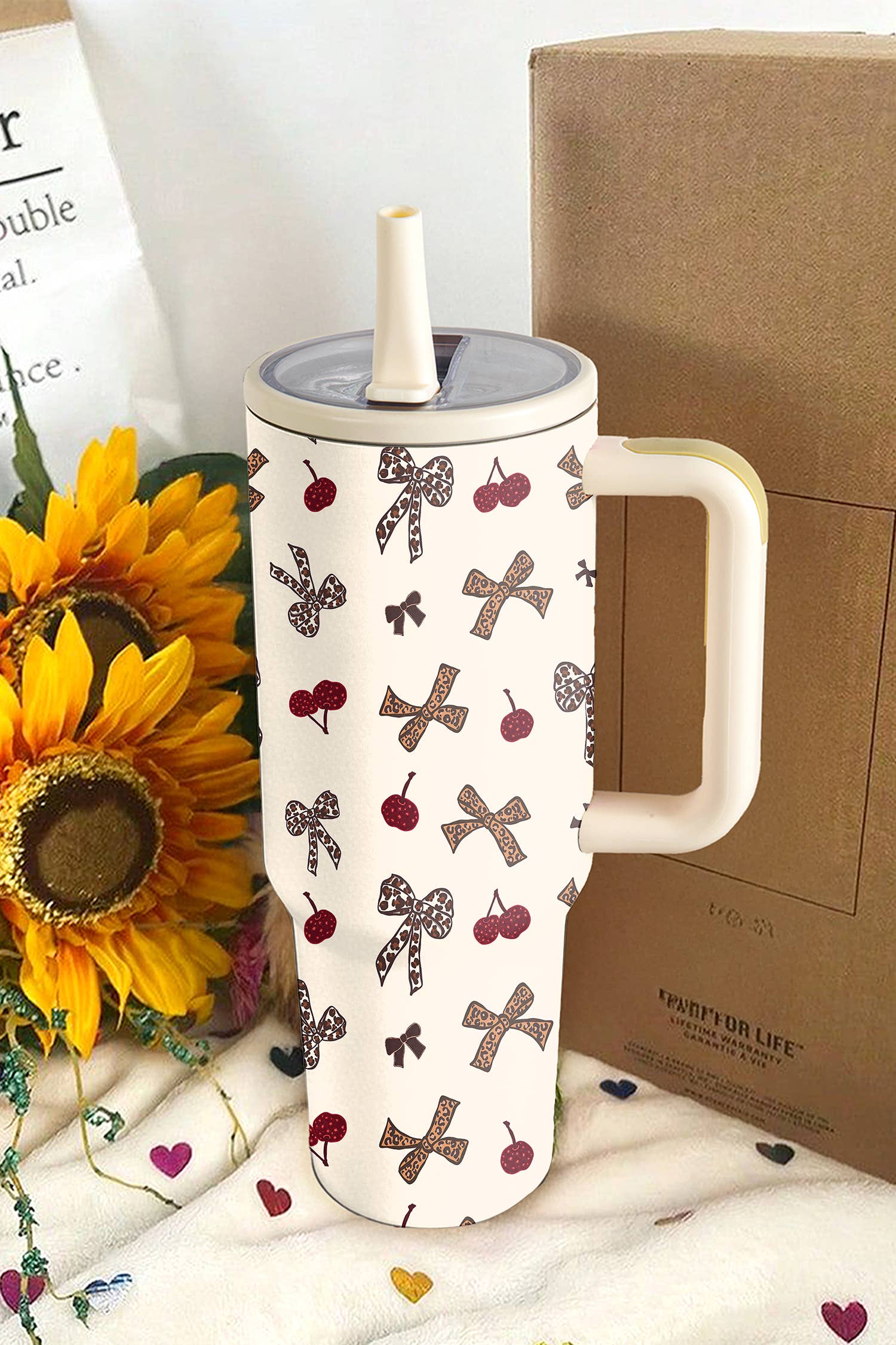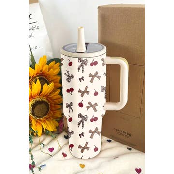 The Stainless Steel 40 oz. Tumbler, Cherry Picking from Vera Bradley by Lifeguard Press adds a touch of elegance to your daily hydration. This insulated mug/tumbler is perfect for any setting. Its cherry picking design brings the beauty that founders Barbara Bradley Baekgaard and Patricia R. Miller desired to bring to the world. This tumbler, like all Vera Bradley gifts and accessories, is licensed through Lifeguard Press, ensuring quality and authenticity. Enjoy your beverages with style and convenience.
