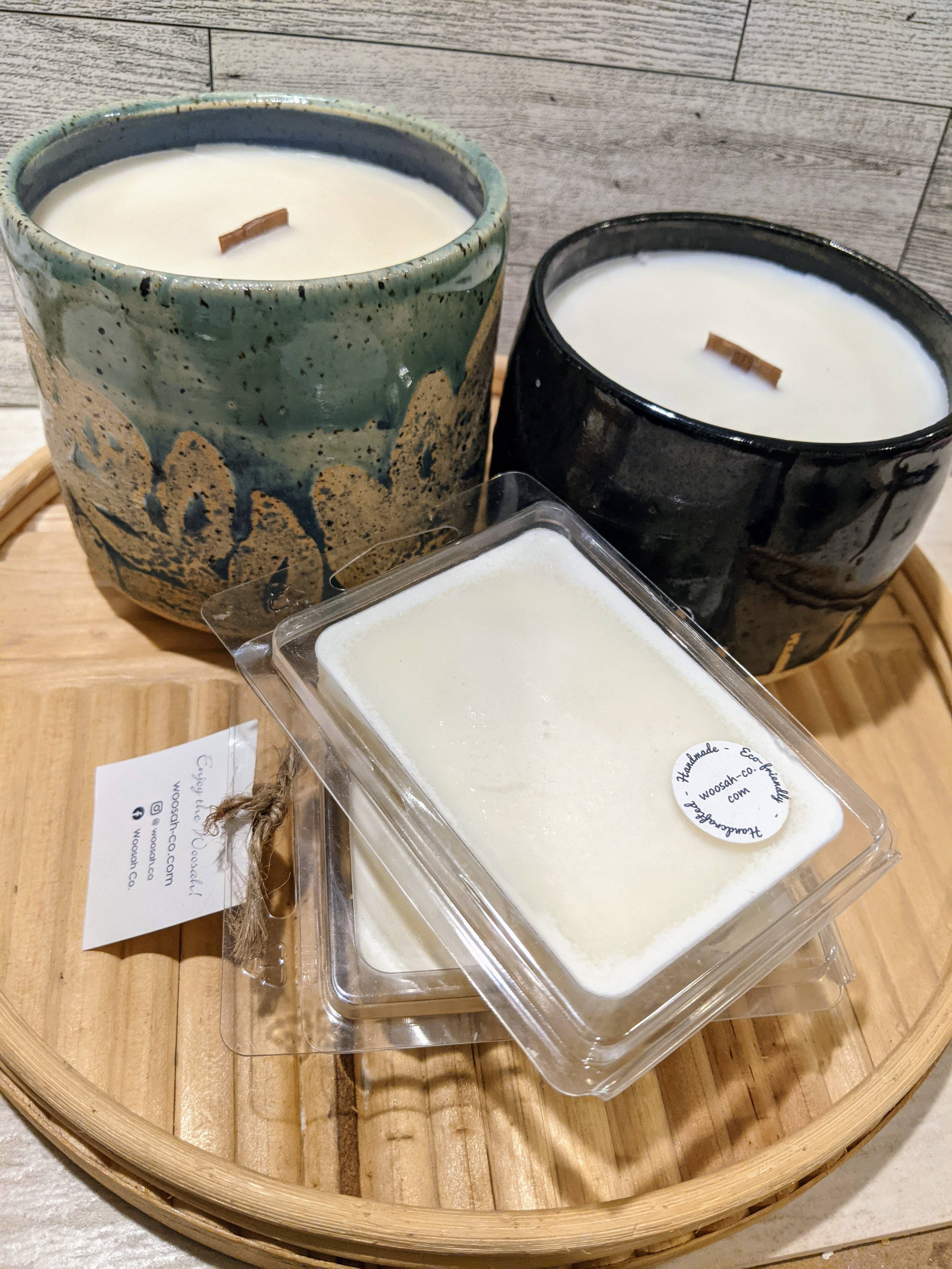 SKU: 1oz/Wax/App Made in United States Benefit: Mood Enhancing Ingredients: All natural soy wax melt, infused with high quality fragrance oil Scent: Amber, Aquatic, Citrus, Earthy & Woody, Green, and Warm & Spicy Size: Gift Set and Travel / Mini Fragrance Notes: Allspice, Amber, Apple, Balsam Fir, Banana, Berry, Cedarwood, Cinnamon, Clove, Coconut, Coffee, Cypress, Gardenia, Iris, Jasmine, Lavender, Lemon, Lilac, Lily, Moss, Musk, Patchouli, Pine, Pineapple, Rose, Rosemary, Sage, Salt, Sandalwood, Sea Breeze, Tea Tree, Tobacco, and Vanilla Weight: 28.35 g (1 oz) Dimensions: 2.5 x 2.5 x 2.5 cm (1 x 1 x 1 in) Product Materials: Organic and Vegan Packaging: Recyclable Production: Ethically sourced