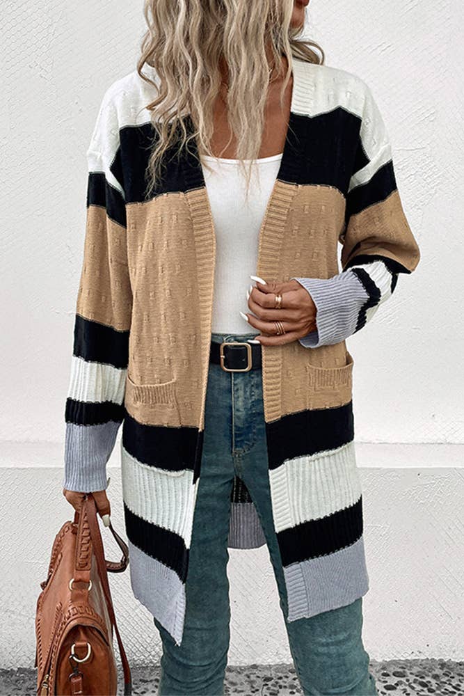 Style Casual Pattern Striped Occasion Daily Season F/W 🔵 Bold stripes bring chic, classic flair to winter looks. 🔘 Button front lets you style it open or closed. 🔻 Flattering V-neck is perfect for layering and accessorizing. 🧥 Drop shoulders create a relaxed, modern shape. 🍂 Cozy cardigans offer warmth and comfort for cool days. We offer personalized woven labels and tags. If you're interested in this service, please contact us to learn more details.