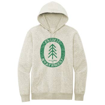 A forest of firs decorates this hoodie's extra-roomy pocket. The green and beige of the fabric create a disappearing effect, as the forest fades into the mist. Relaxed hoodie with oversized hood (fits over headphones!) and large, decorative front pocket. Made Fair Trade from premium organic cotton. This two-toned hoodie in dark Forest green and Oat beige is a unique addition to any wardrobe. Ditch the polyester sweatshirts, and upgrade in sustainability and style. • Exceptionally soft fleeced organic cotton • Oat body + Forest green sleeves • Relaxed, all-gender fit • Large hood + roomy, raglan sleeves • Forest pocket design • Spiral drawstring