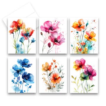 5 x 7" greeting cards. Blank inside. White envelope included. Each card individually packaged in clear protective flap-seal bag. Card stock paper is FSC certified. The Forest Stewardship Council is the world's most trusted mark for sustainable forestry. Made in USA. Cards are sold in sets of six (6) per image.