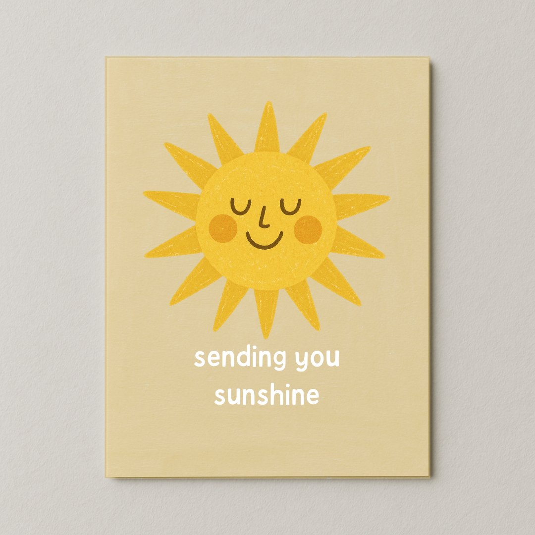 We could all use a little extra sunshine in our lives! Send a little Sunshine someone's way with this cute greeting card! It's been a year full of disconnect, so stay connected with some fun happy mail! Snail mail is more important than ever in these times! Stay connected with loved ones by sending out some Paper Hugs - just like a hug with a fold in the middle! All my cards are designed, printed, cut, folded, packaged, and shipped by my two hands! Thanks for supporting this Mama Owned shop! Details on your paper hug: 4.25 x 5.50 (standard size A2) Blank inside for your own personal message (or request a printed message) Includes envelope Made using quality 110lb cardstock Printed using high-quality genuine long-lasting ink.
