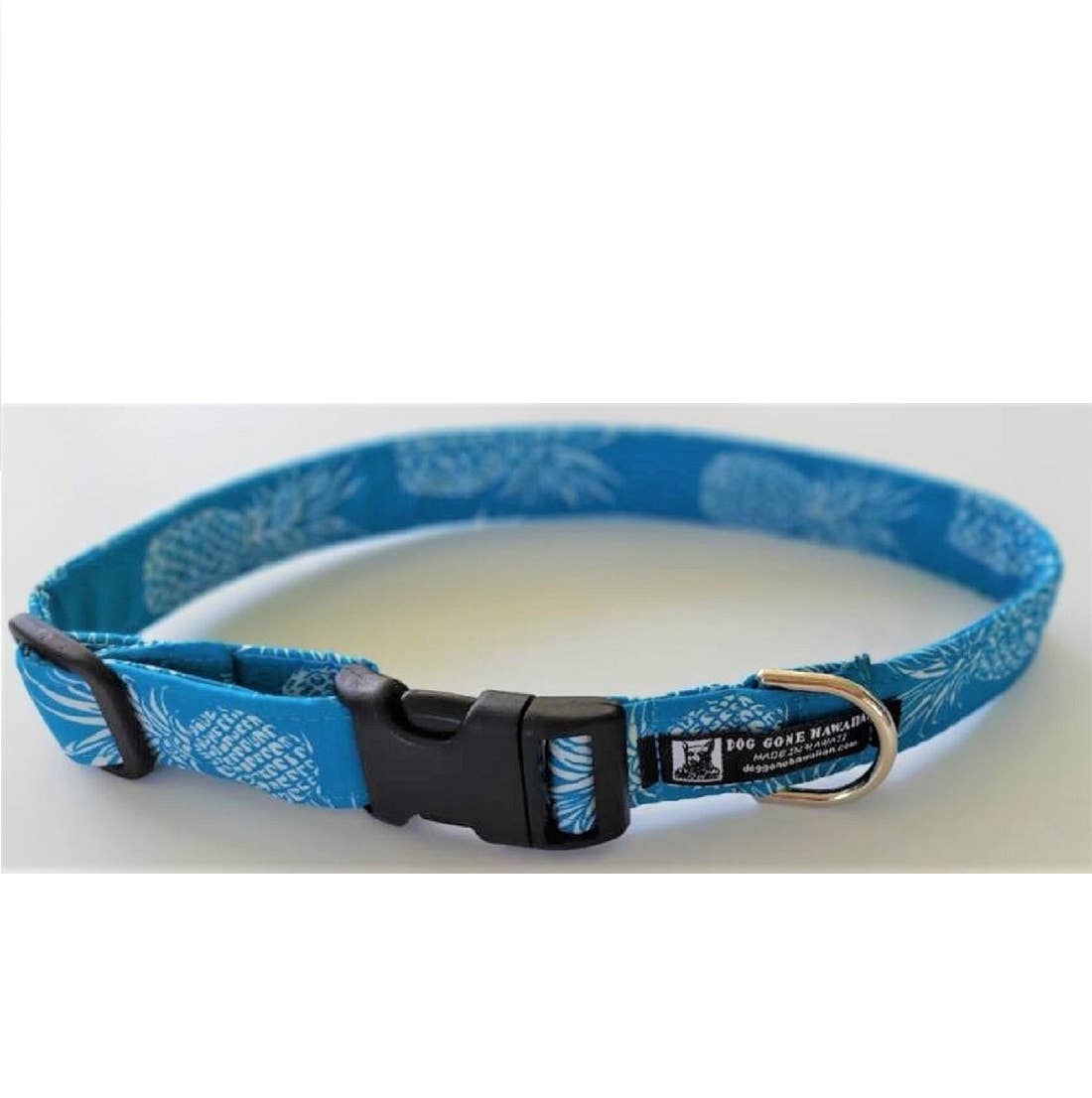 All of our collars and leashes are handcrafted with "Aloha" in HAWAII, U.S.A. by Lori and Tom--using the highest quality materials. We sew hand-selected cotton fabric over webbing to help keep pet fur from matting, provide more comfort for your pet, and provide a unique Hawaiian touch. Stress points are triple stitched for durability. We use Made-in-USA heavy duty hardware. The high-tensile strength webbing forms a strong inner core for both the collars and leads. The heavy-duty plastic curved buckles and slide make the collars fully adjustable and more contoured for your dog's comfort. The thick, Solid-Weld Nickel Plated metal D-rings on the collars and heavy-duty bolt snap-locks on the leads ensure a secure collar-lead connection and reduces corrosion (rust resistant). Each item is hand-made, so no two collars or leashes are exactly the same--ONE of the nice things about them! Smaller width items show less pattern--more about the colors. (shown is a 1" Large Collar).
