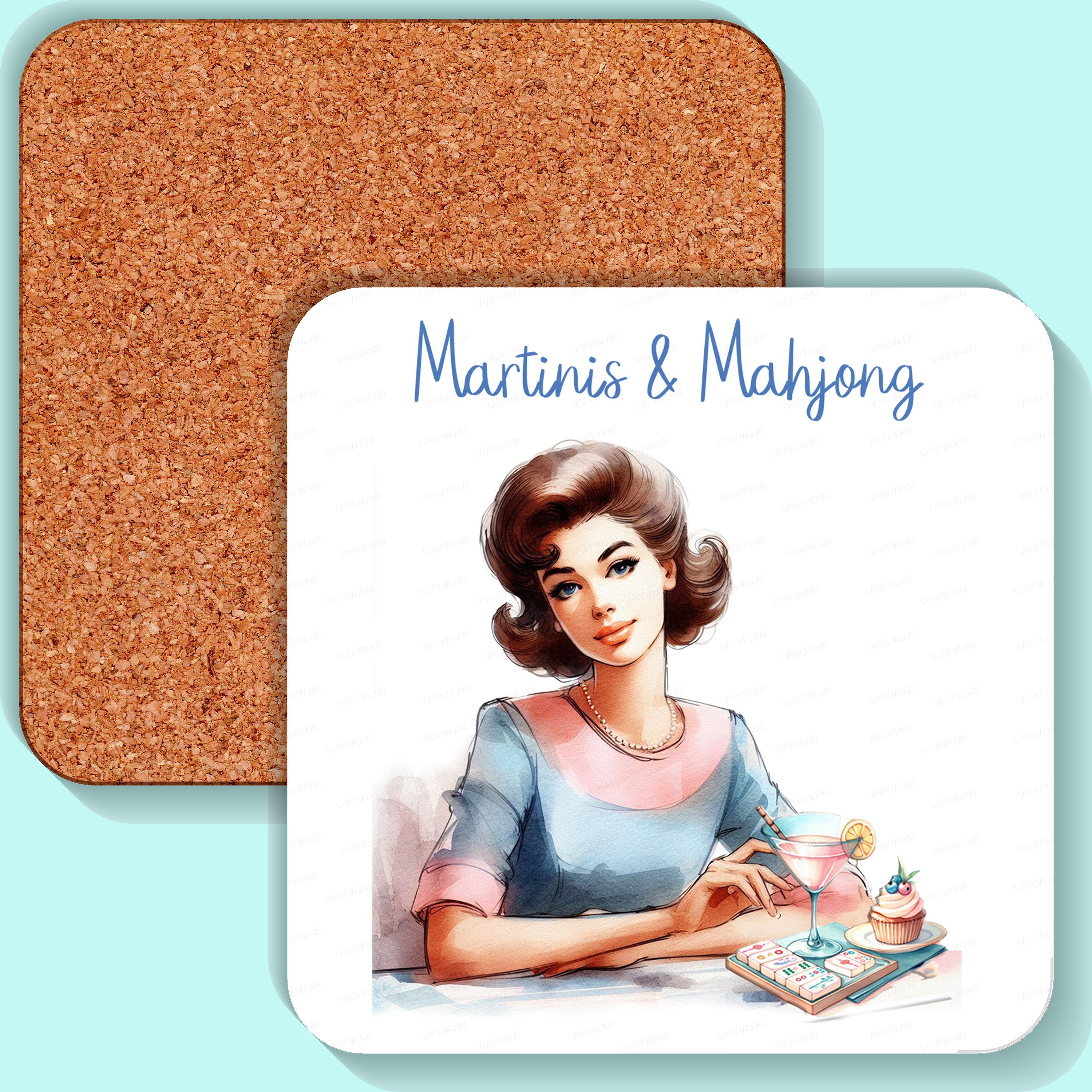 4-Pack of Drink Coasters. Enjoy your favorite drink and entertain your friends with these fun drink coasters! They feature a high-gloss finish and a cork-wood back to prevent sliding and protect your table. Start a collection. They make great gifts. 4-piece set High-gloss MDF top Cork back to prevent sliding 3.75" x 3.75" $25