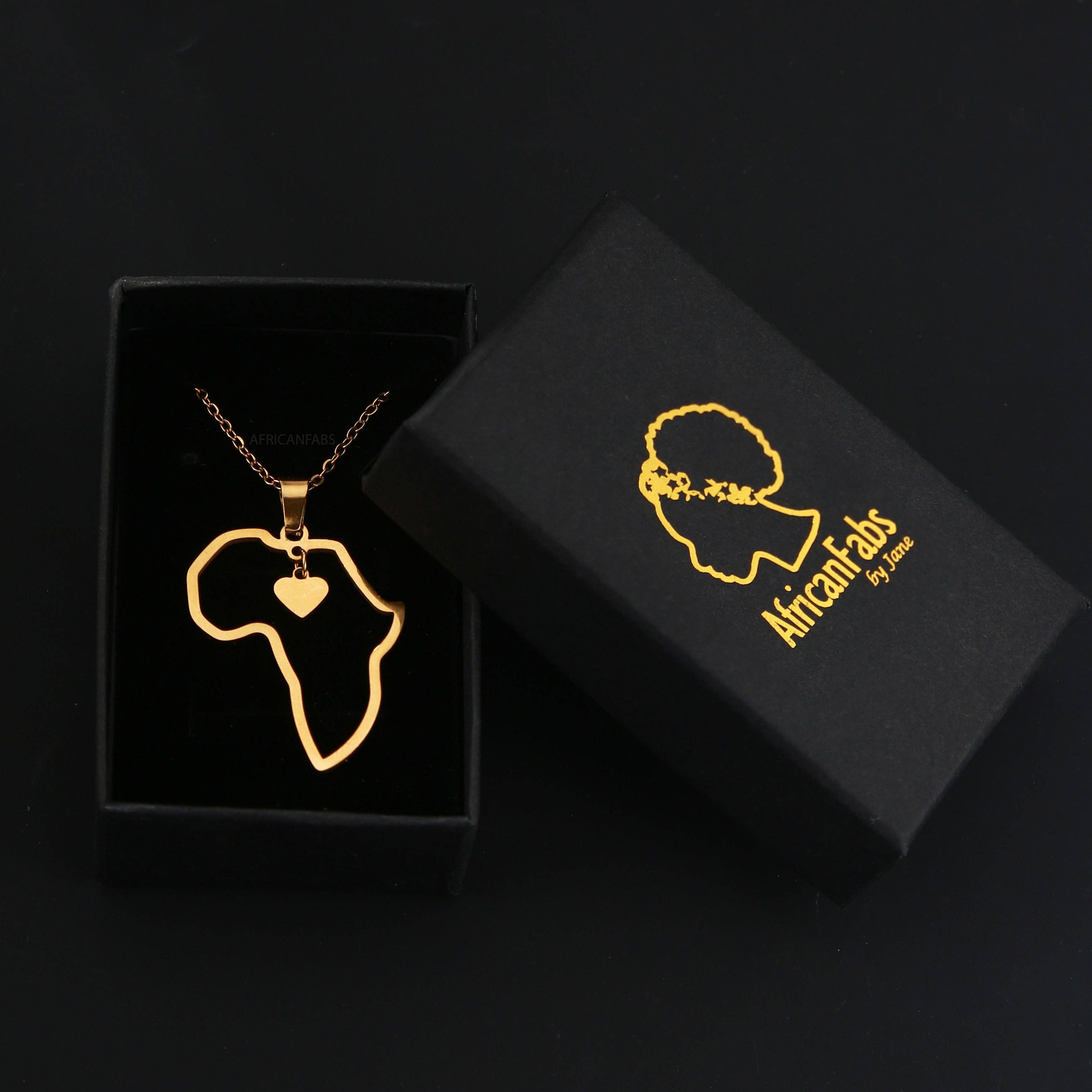 Elegant necklace with a pendant in the shape of Africa with cross. Complete your outfit with this stylefull necklace. Great to gift to somebody or to express your love for Africa. Material: 18K Real Gold plated Chain length: 45cm (18 inch): adjustable up to 50 cm (20 inch) Inside material: Stainless steel (nickel free) Size of the Africa shape: height 4 cm x width 2 cm The necklace will be presented in our AfricanFabs jewelry box, as shown on the photo. High quality real gold plated necklace. This necklace can be worn permanently, it does not have to be taken off during a shower, during a swim or while playing sports. The gold plated material will last a long time and the shiny real gold finish will stay beautiful.