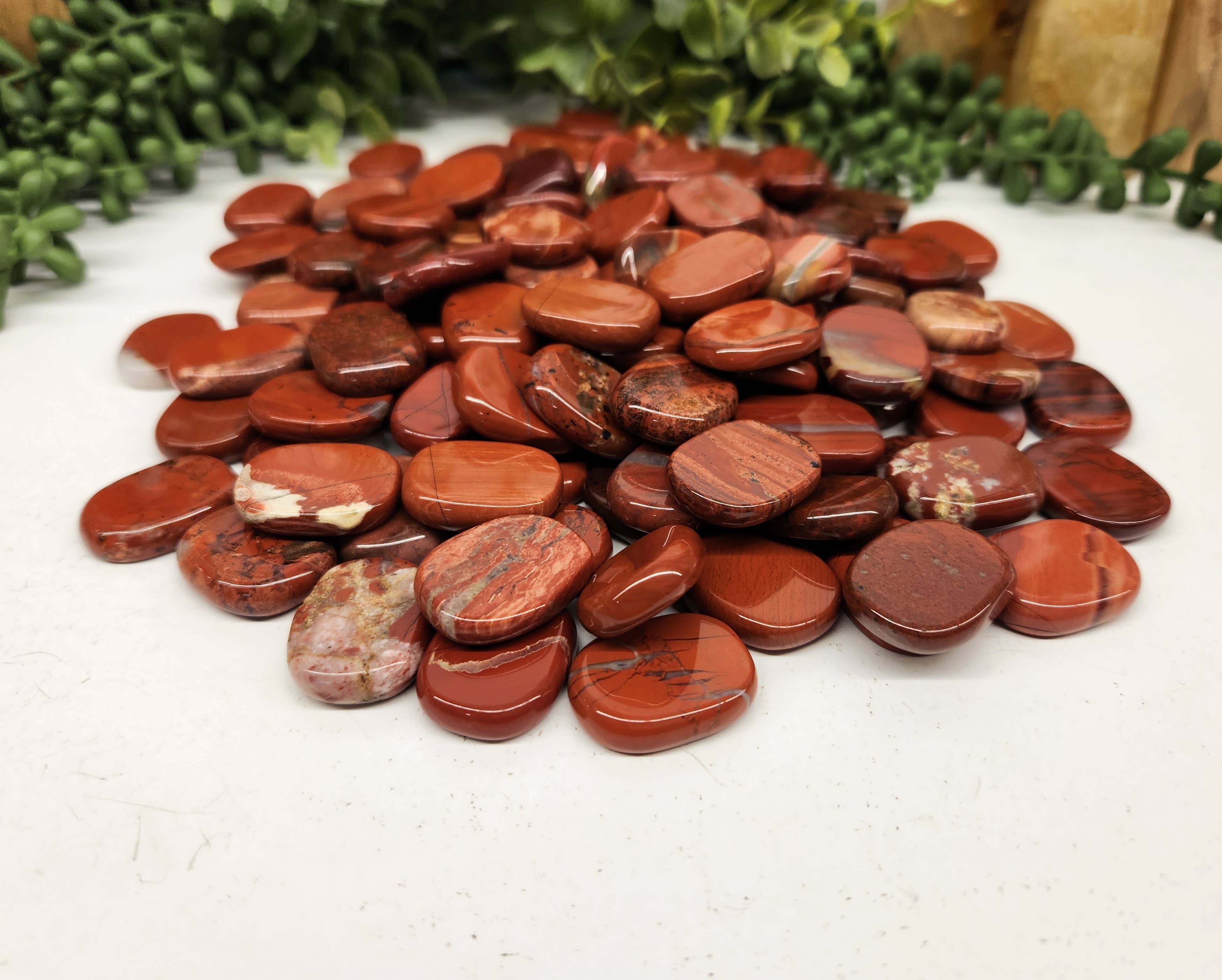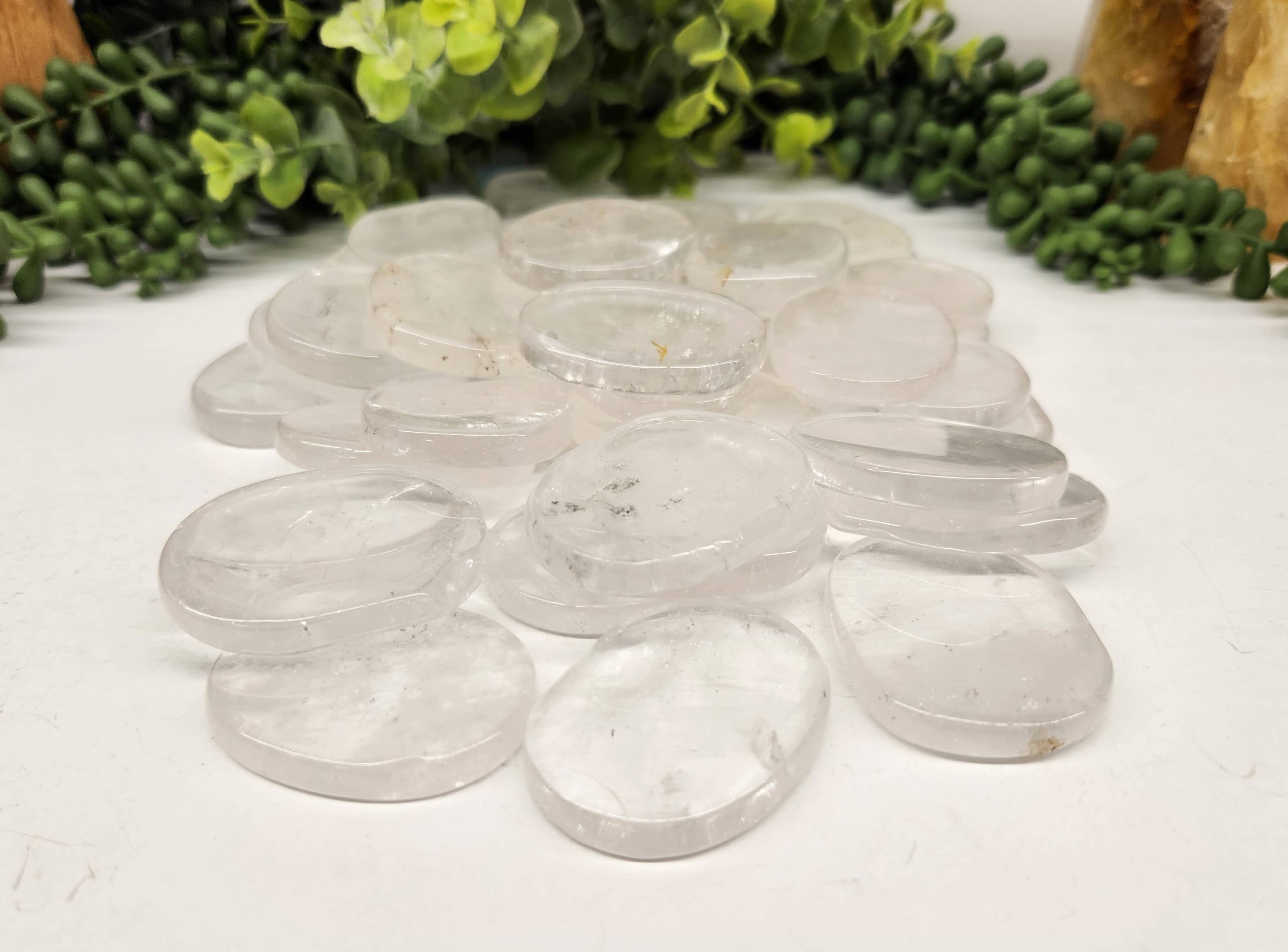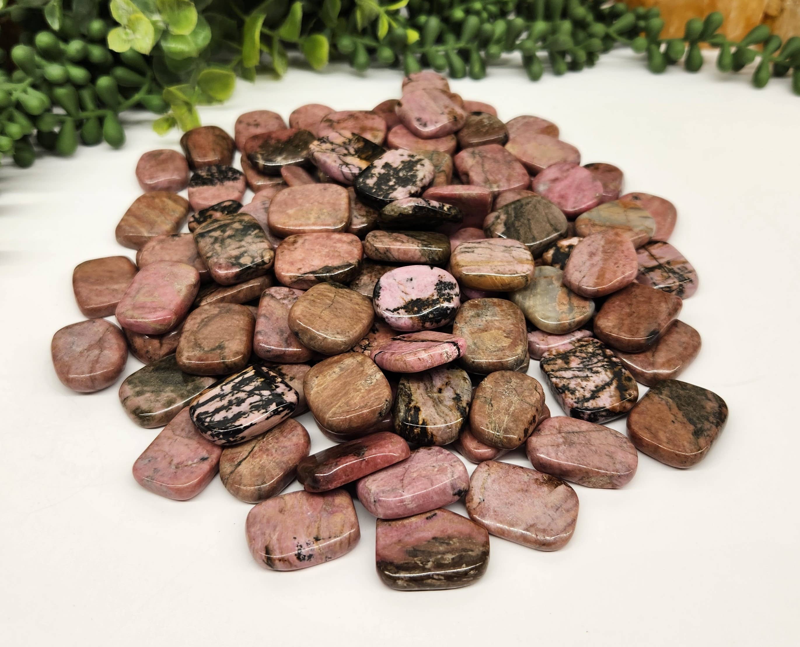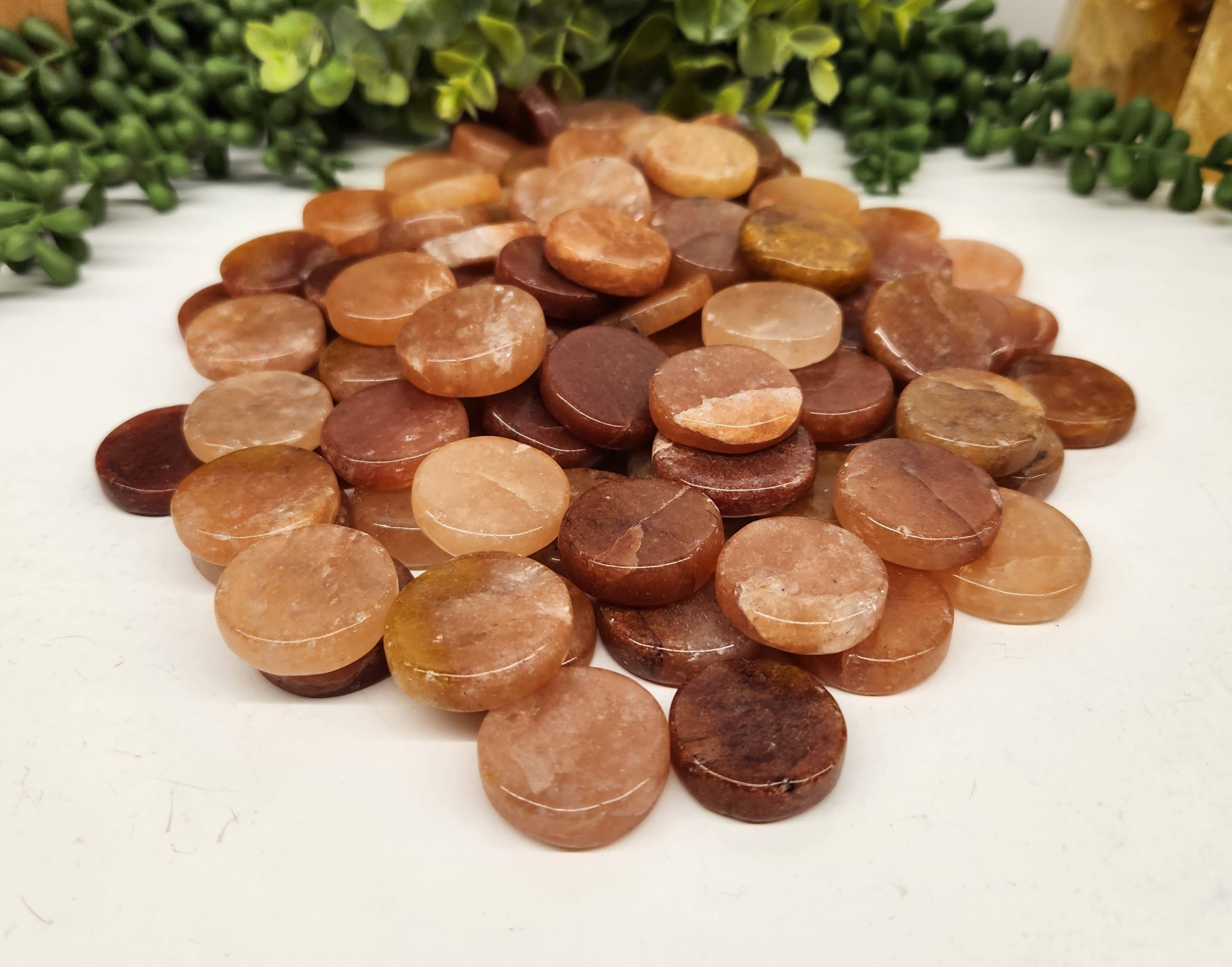 I love the smoothness and shine of the pocket stones. The weight feels good in my hand. The stone beeds in the bracelets are smooth and of consistent size.
