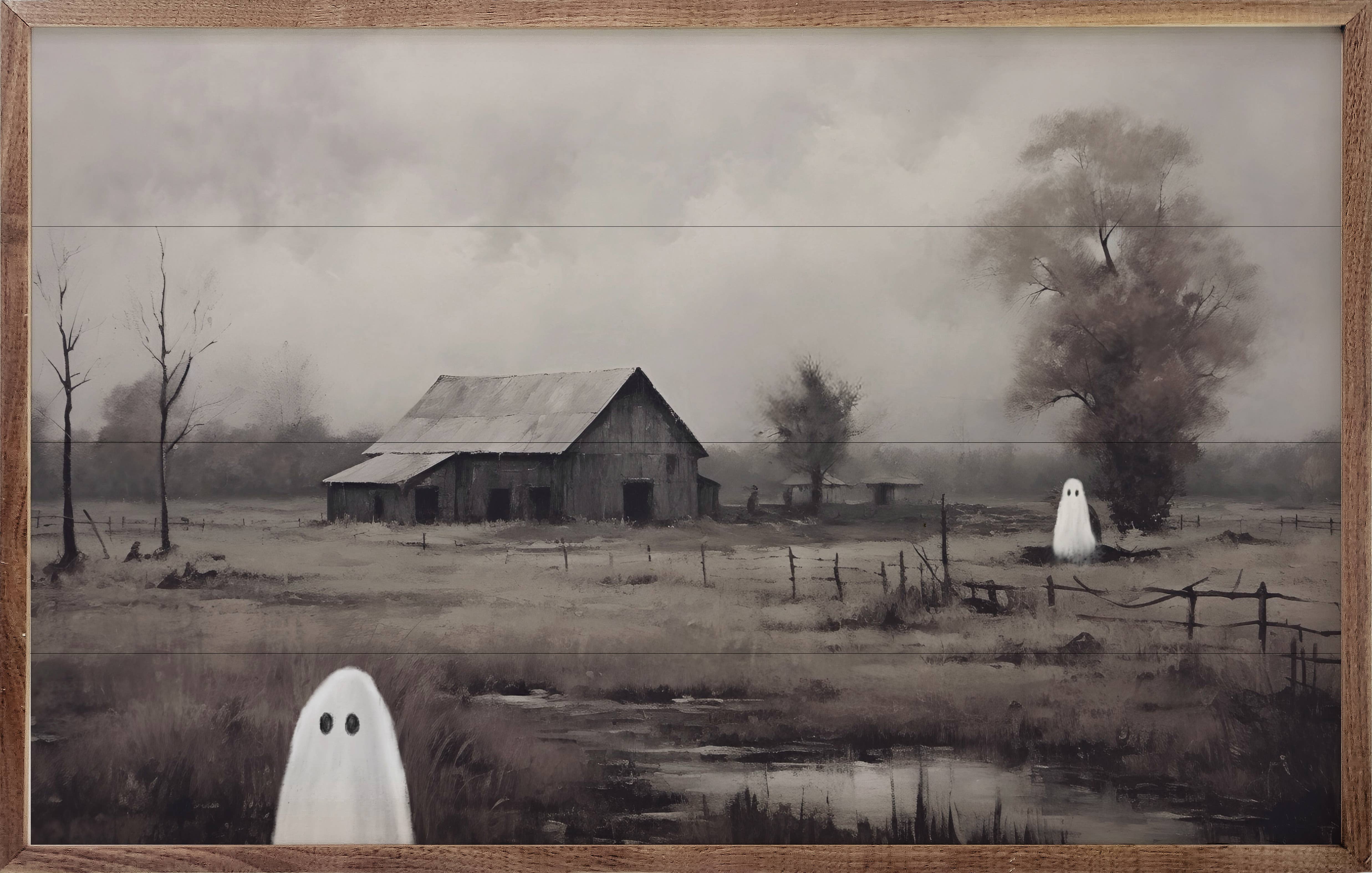 Arch Top Moody Ghost House Framed Art