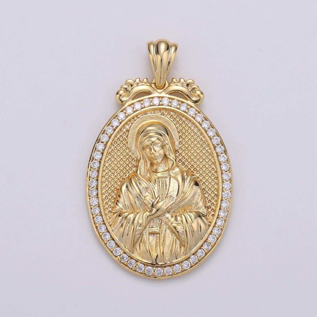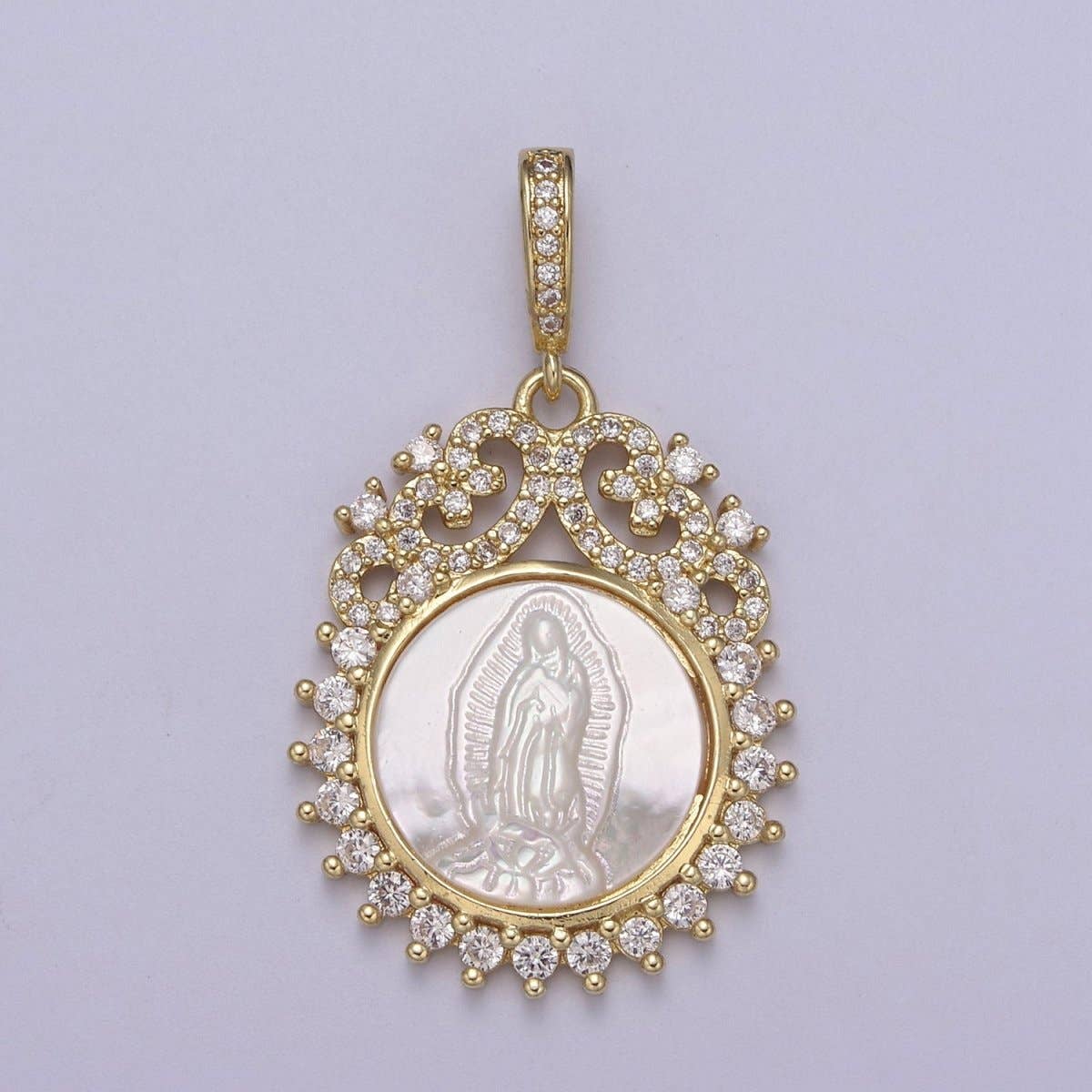 Wholesale Overstock Clearance 24k Gold Filled Virgin Mary Pendant Necklace Pink Micro Pave Virgen de Guadalupe Medallion Pendant for Necklace Religious Jewelry Supply I-649 I-650