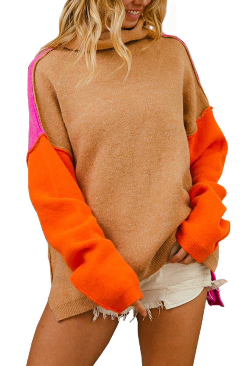 5besties inc - Wholesale Tunic Sweater - Women's - COLOR BLOCK SWEATER DRESS