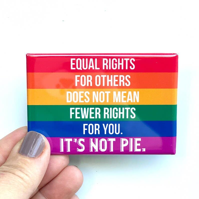 Anthem Sticker Company's flat back rectangle magnets feature a strong magnet that will stick to any metal surface. Proclaim your anthems while decorating your locker, refrigerator, desk, coffee maker and more. • MADE TO ORDER; guaranteed to ship within 3-5 business days (but usually faster ;) • Measures 2"x3" • Made with mylar, recycled paper, a metal interior, and magnetic backing • Hand-pressed with care in La Crosse, WI • Plastic-free packaging: shipped loose in paper packaging
