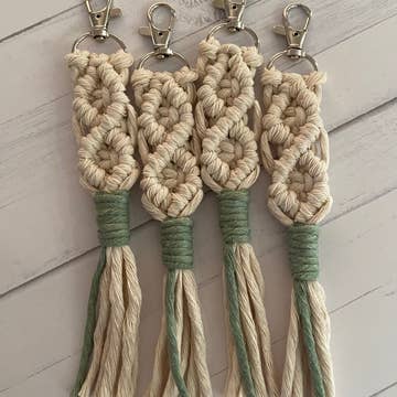 Cute mermaid tail keychains. Made with 100% recycled cotton cord and silver key clasp. Measures approximately 5 1/2” long.