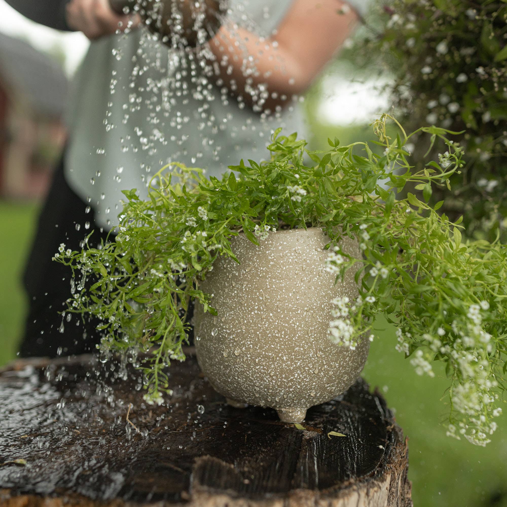 This beautiful footed ceramic pot is the perfect addition to any rustic coastal decor. Its textural matte white finish is accented with light black distressing, giving it a unique and eye-catching look. It can be used as a planter, shelf decor, or simply as a decorative piece. A timeless design that will transition through the seasons. -Size is perfect for small plants or styling a shelf or mantel. -3 foam feet on bottom; No drainage holes. -Features a textural matte white finish accented with light black distressing. -Material: Stoneware -Rustic accent for traditional and coastal decor styles. -Perfect For: Natural Decor, Rustic Decor, Coastal Decor, Farmhouse Home Decor, Houseplants, Pots and Planters, Flower Pots, Plant Dad, Plant Lady, Gift Items, Gift Shop Items, Home Gifts, Ceramic Plant Pots, Pottery Handmade
