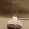 Create a warm and inviting glow with our handcrafted Hurricane Candle Lamp. Featuring a natural granite stone base and a glass hurricane shade, this lamp is designed to protect the flame from wind while adding both beauty and safety to your space. Each lamp includes a standard unscented votive candle, ready to light. Perfect as a stunning centerpiece for holiday tables, fall evenings, or outdoor gatherings, the Hurricane Candle Lamp transitions seamlessly from cozy indoor décor to patio lighting. With its natural variations in stone color and texture, every lamp is one-of-a-kind.