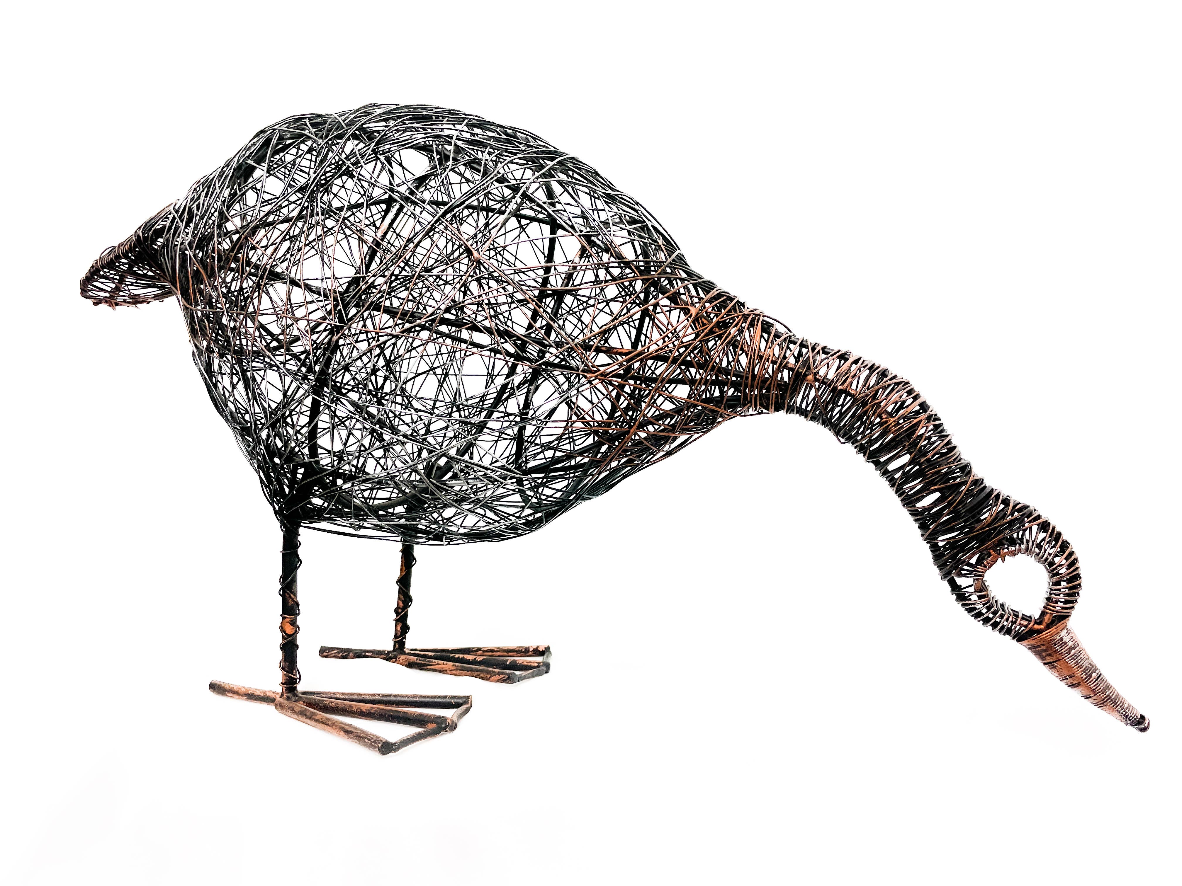 This beautiful standing duck garden statue brings playful charm to your outdoor space. Crafted from wrapped wire, the statue features a unique blend of silver, copper, and black hues, giving it a striking, metallic look that catches the light from every angle. This duck adds a fun, quirky element to your garden or patio. Its durable design ensures it stands up to the elements, making it a delightful, long-lasting addition to any garden setting. We recommend spraying with a clear coat to protect against the outdoor elements. Size: 19"L x 5.5" W x 18"H **While this is a best selling item please note due that due to the size and volume of this item, increased shipping costs may apply** Keywords: duck, standing, mother's day, statue, outdoor, garden, garden decor, home decor, outdoor decor, spring, summer, copper, silver, black, boho decor, rustic decor, India, fair trade, Father's Day