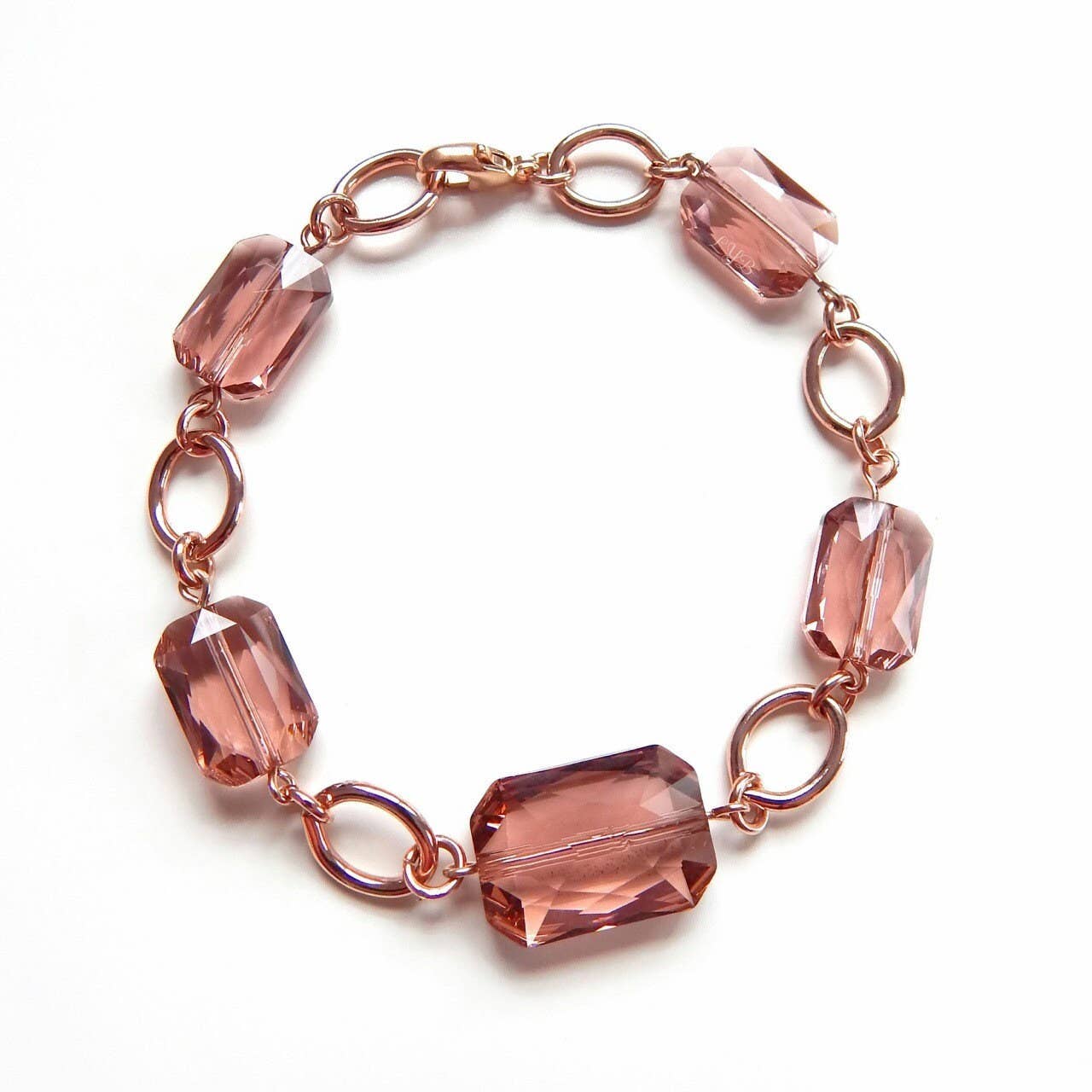 This stunner is made with a genuine Swarovski crystal in a blush pink shade that matches rose gold perfectly. I handset the 18x13mm stone in a plated dangle and hung it on a matching rose gold chain. All metal is rose gold plated.