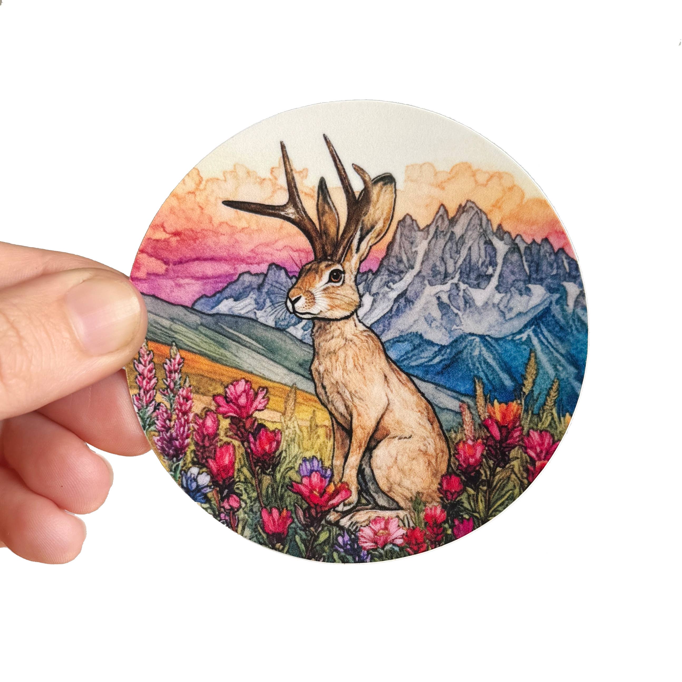 3.2" X 2.0" Glossy Coated Vinyl Sticker Scratch and Weatherproof Jackalope Conservation Society The jackalope is a mythical animal of North American folklore, in the category of fearsome critters, described as a jackrabbit with antelope horns It's a fun story!!! In the 1930s, Douglas Herrick and his brother, hunters with taxidermy skills, popularized the American jackalope by grafting deer antlers onto a jackrabbit carcass and selling the combination to a local hotel in Douglas, Wyoming. Thereafter, they made and sold many similar jackalopes to a retail outlet in South Dakota, and another taxidermist continues to manufacture the horned rabbits in the 21st century. Please Note: Since every computer screen is different the colors here may vary from the actual sticker.