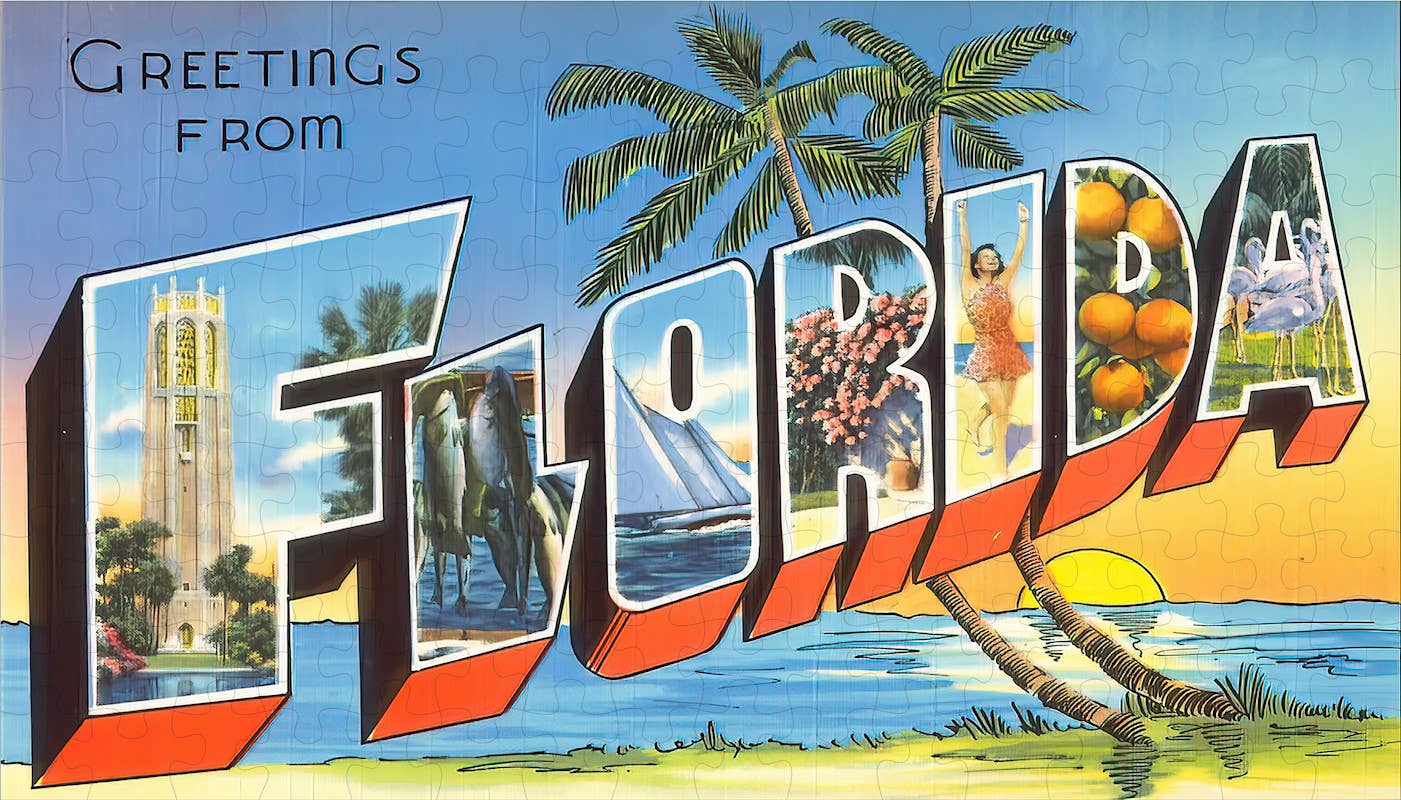 The Yellowhammer State’s oldest city is Mobile, founded by French colonists in 1702 as the capital of French Louisiana. When the French lost to the British in the Seven Years’ War it became part of British West Florida, and after the Revolutionary War the territory was divided between the United States and Spain. Sections of what is now Alabama have been part of Spanish West Florida, the Republic of West Florida, Mississippi Territory, and the Province of Georgia before being admitted as our 22nd state in 1819. Charlie Girard has assembled a collage tour of this eclectic state on a 1,000 piece puzzle with a finished size of 24” x 30”.