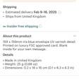 Made in United Kingdom Weight: 25 g (0.88 oz) Dimensions: 0.2 x 15 x 15 cm (0.1 x 5.9 x 5.9 in)