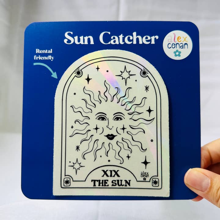 These rental friendly sun catcher stickers are made using refractory adhesive decals to create magical rainbow beams of light. How to use: Clean window with window cleaner, make sure not to leave any lint or fibres behind in the glass. Peel sun catcher from backing and stick to glass. Enjoy the rainbow show! Can be moved multiple times before damaging the suncatcher. Easy to remove: simply peel back sticker from window and wipe clean with cleaner and rag. Size: 9.6 x 11.9 cm (3.8 x 4.7 inches) Designed by me in my sunny studio in Sydney Australia.