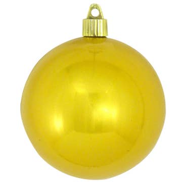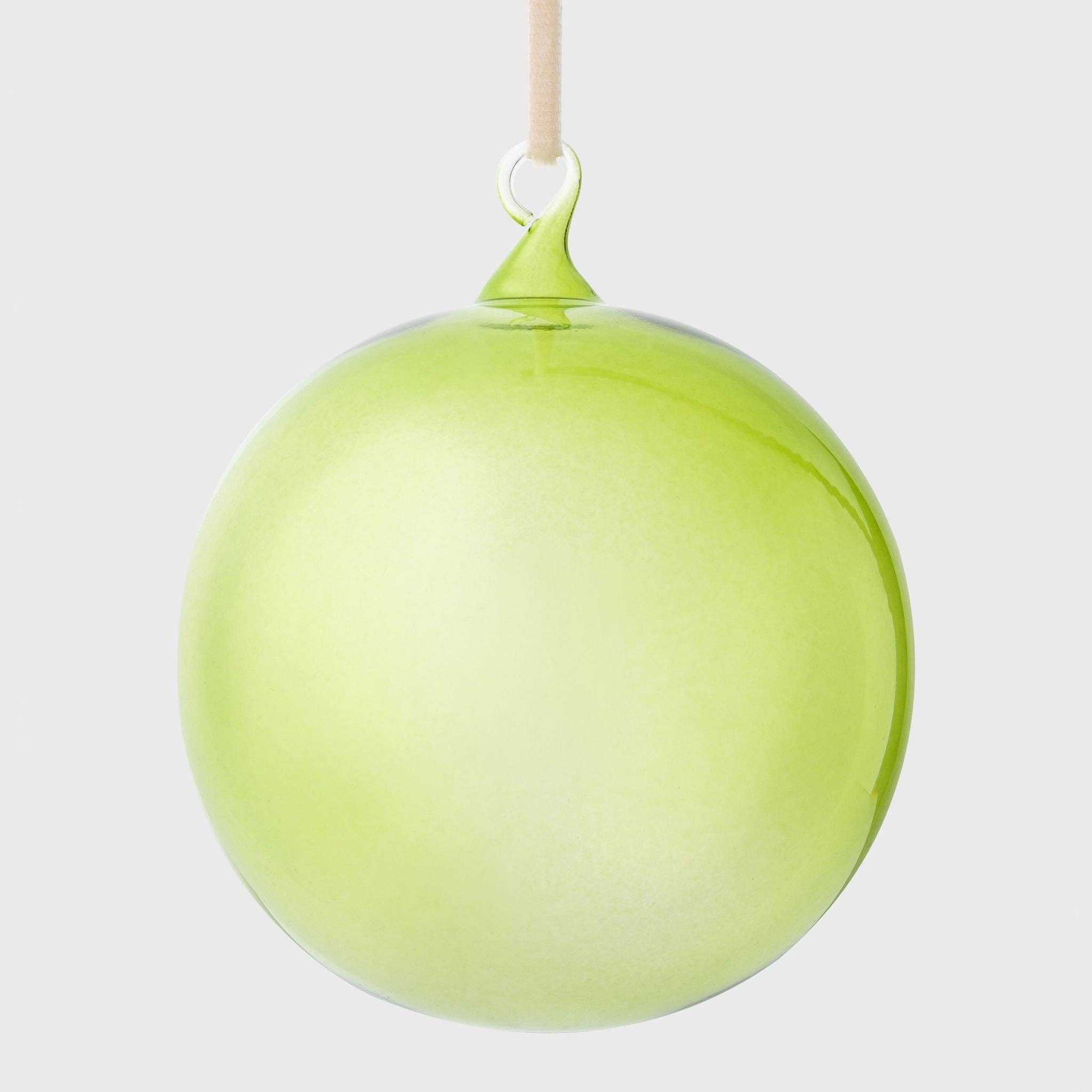 This citrine colour is the perfect accent at the holidays to all your green and red... it brings such a modern spin to any decor. It works so well with the blue and pink glass bubbles as well. These are hand-blown in the Czech Republic, so they are truly a timeless piece of art. Glass with a velvet ribbon 3" diameter Set of three Hand blown in the Czech Republic Packaged in a white storage box