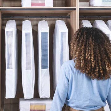 These handmade garment covers are made of pure cotton. They are 18"x18", open from the bottom for easy inserts and access to the garments. These are ideal for small Jackets, Tops, Blouses, Sarees and Suits. They are eco-friendly and are great for packing luggage or simply hanging clothes in wardrobes. They are not chemically treated unlike the bags made of non-woven or plastic material. They keep garments safe from dust particles and will preserve them in their true form for generations. Size: 20"x20" Fabric: Cotton Uses: Wardrobe and Closets organization. For covering/hanging small jackets, tops, blouses, sarees and suits in wardrobe and closets; packing and storing luggages.