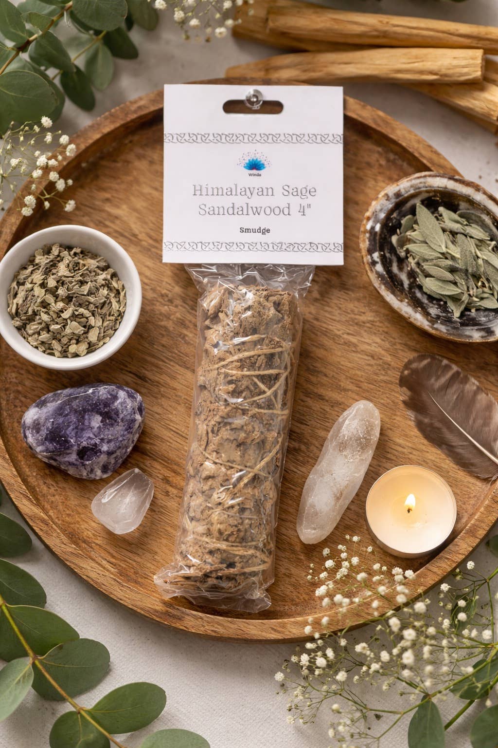 Crystal Sage Palo Santo Bundle w/ Stone Pendant