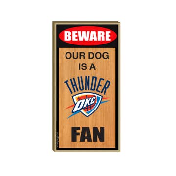 Oklahoma City Thunder Official product : Whether you've been a Thunder fan since they were the Seattle Supersonics or you've only recently become a fan, one thing is certain - this decor is a must-have for any fan. Fun Vintage Sign : Boasting a Thunder blue and sunset color palette, the Thunder's team logo, and plenty of team spirit, this sign is sure to be a stand-out among your collection of team memorabilia. Material : This eye-catching decor is made of durable, lightweight, hollow-backed MDF wood. It comes complete with hanging hardware for quick and easy wall display. Places to Use :Make a sporty addition to your man cave, office, or game room with this charming sign. Size : 6" W X 6" H X 1.25" D