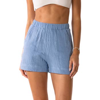 Solid buttery soft drawstring dolphin shorts with side pockets Model is wearing a size SM In packs of S/M(3) and L/XL(3) per color only.