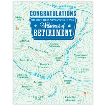 One of the best selling cards in our gallery - gift shop located in a mountain town. Customers love the topo map graphics with hilarious, fictionally named mountain peaks and valleys.